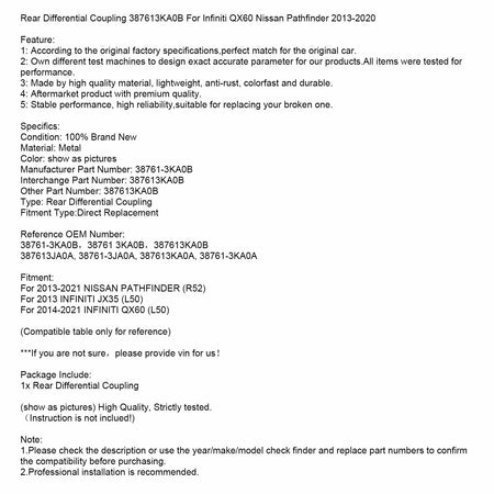 2014-2021 INFINITI QX60 (L50) Hintere Differentialkupplung 387613KA0B