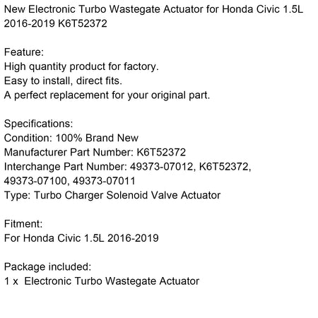 Neuer elektronischer Turbo Wastegate Actuator für Honda Civic 1.5L 2016-2019 K6T52372