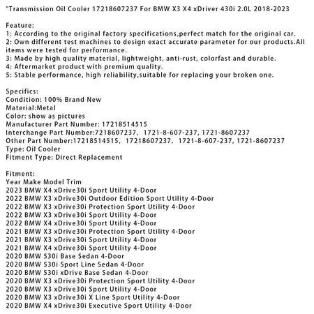 Getriebeölkühler 17218607237 Für BMW X3 X4 xDriver 430i 2.0L 2018-2023