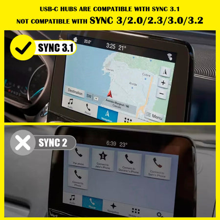 [Hinweis]: Der USB-C-Hub ist nicht mit Sync 3/2.0/2.3/3.0/3.2 kompatibel. Sie müssen die Ford Car Play-Website besuchen, Ihre VIN eingeben und auf Version 3.4 aktualisieren, um auf Car Play zuzugreifen.