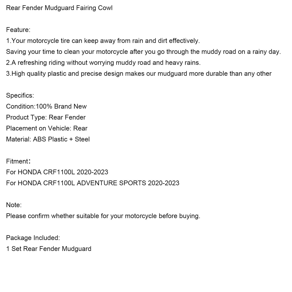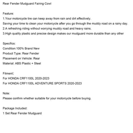 Kotflügel hinten Kotflügel Verkleidung Fit Für HONDA CRF1100L 2020-2023 CRF1100L ADV Sport