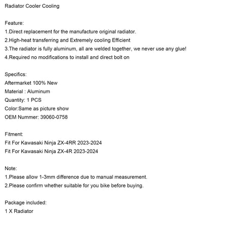 Kühler Kühlung Motor Kühler Fit Für Kawasaki ZX-4R ZX-4RR 23-24 39060-0758