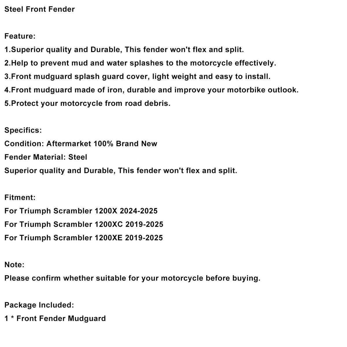 2019–2025 Triumph Scrambler 1200XC Stahl-Kotflügel vorne