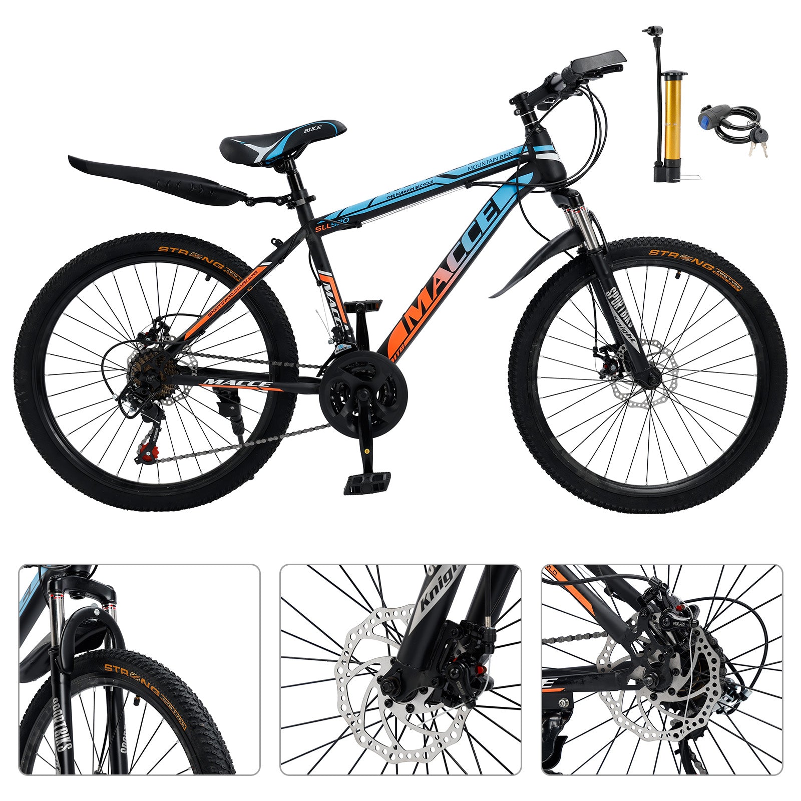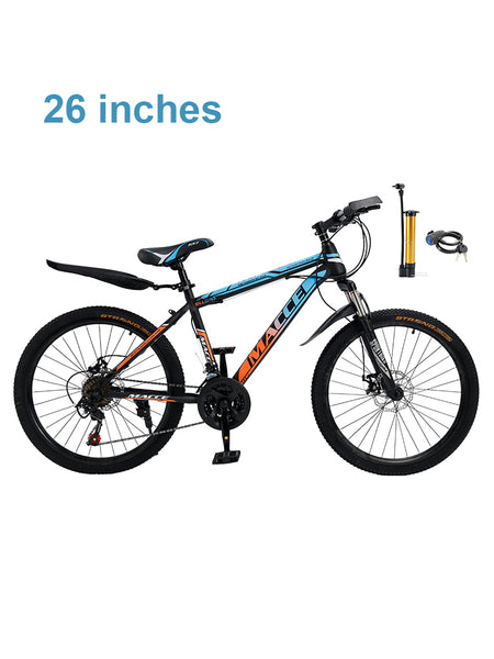 26" Speichenrad 24-Gang Mountainbike Erwachsenenrad MTB mit Schutzblech Blau+Orange