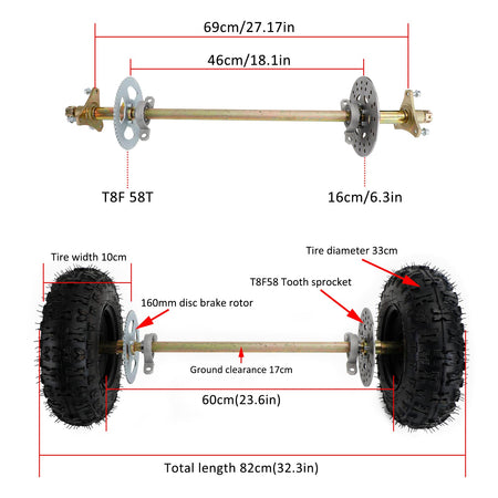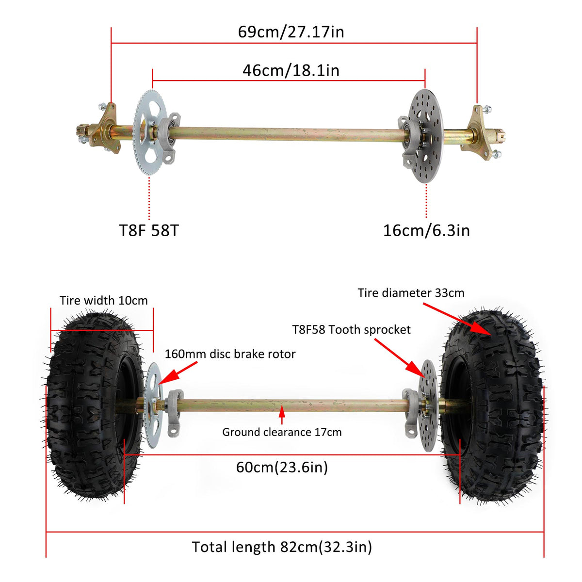 29 Zoll Complete Wheel Hub Kit for Go Kart Quad Trike Drift Bikes Rear Axle Assembly