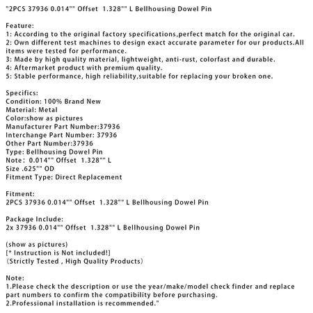2 Stück 37936 0,014"" Offset 1,328"" L Glockengehäuse-Dübelstift