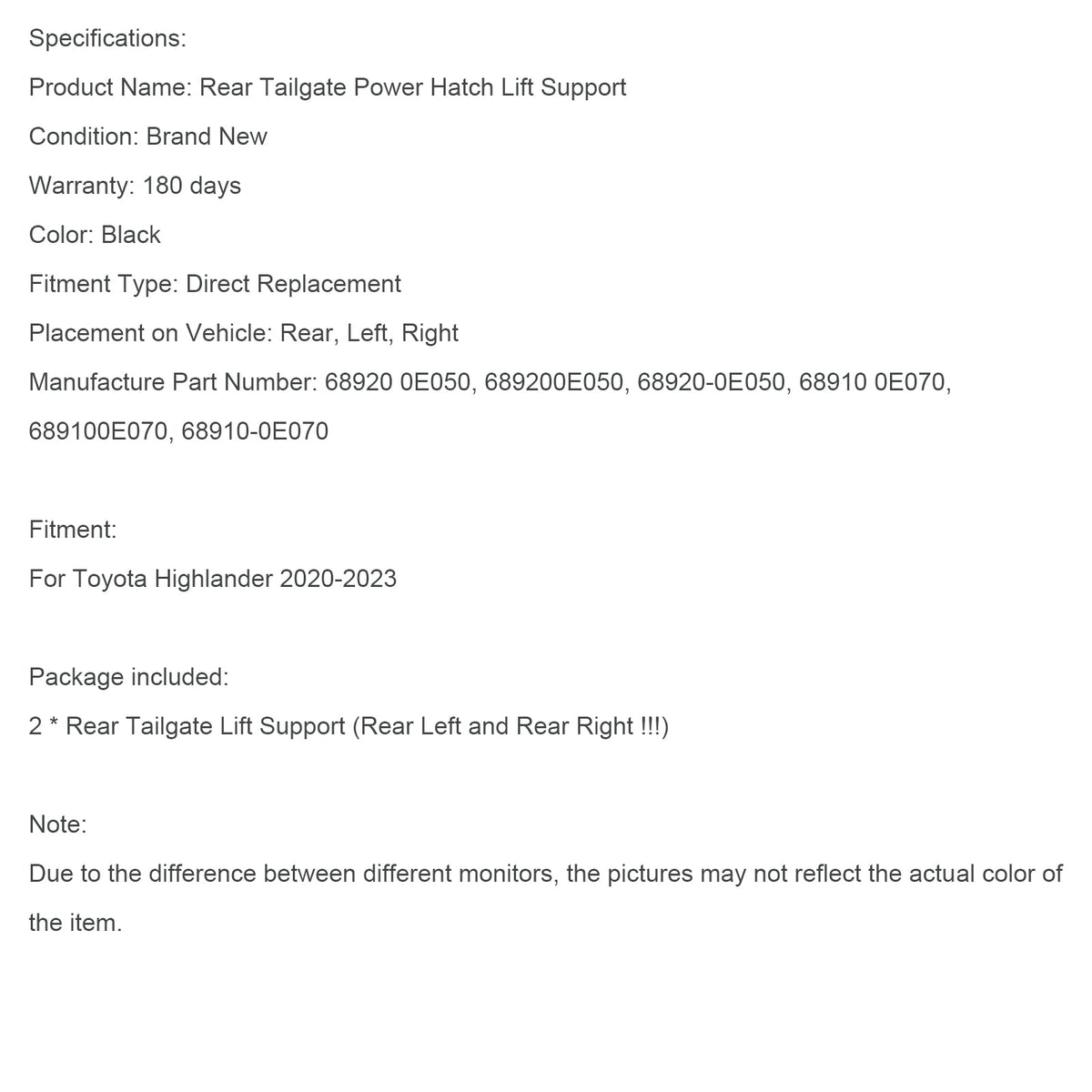 2PCS Elektrische Heckklappe Lift Fit für Toyota Highlander 2020-2023 68910-0E070 689200E050