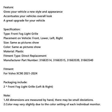 2021-2024 Volvo XC90 2PCS Frontsto?stange Nebelscheinwerfer Kühlergrill Nebelscheinwerfer Kühlergrill