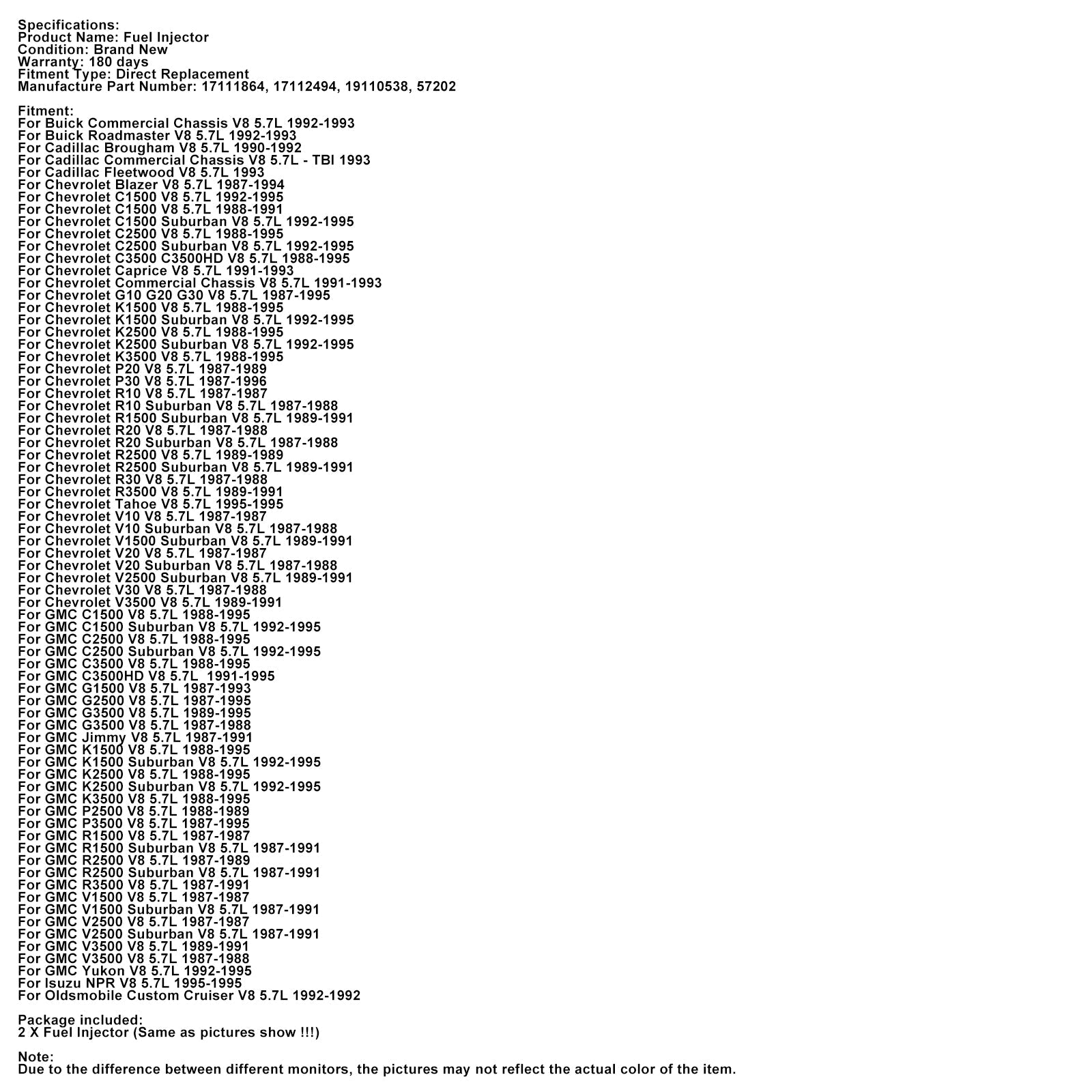 2 STÜCKE Kraftstoffinjektor 17111864 Fit Chevrolet Tahoe Fit GMC Yukon Fit Buick V8 5.7L