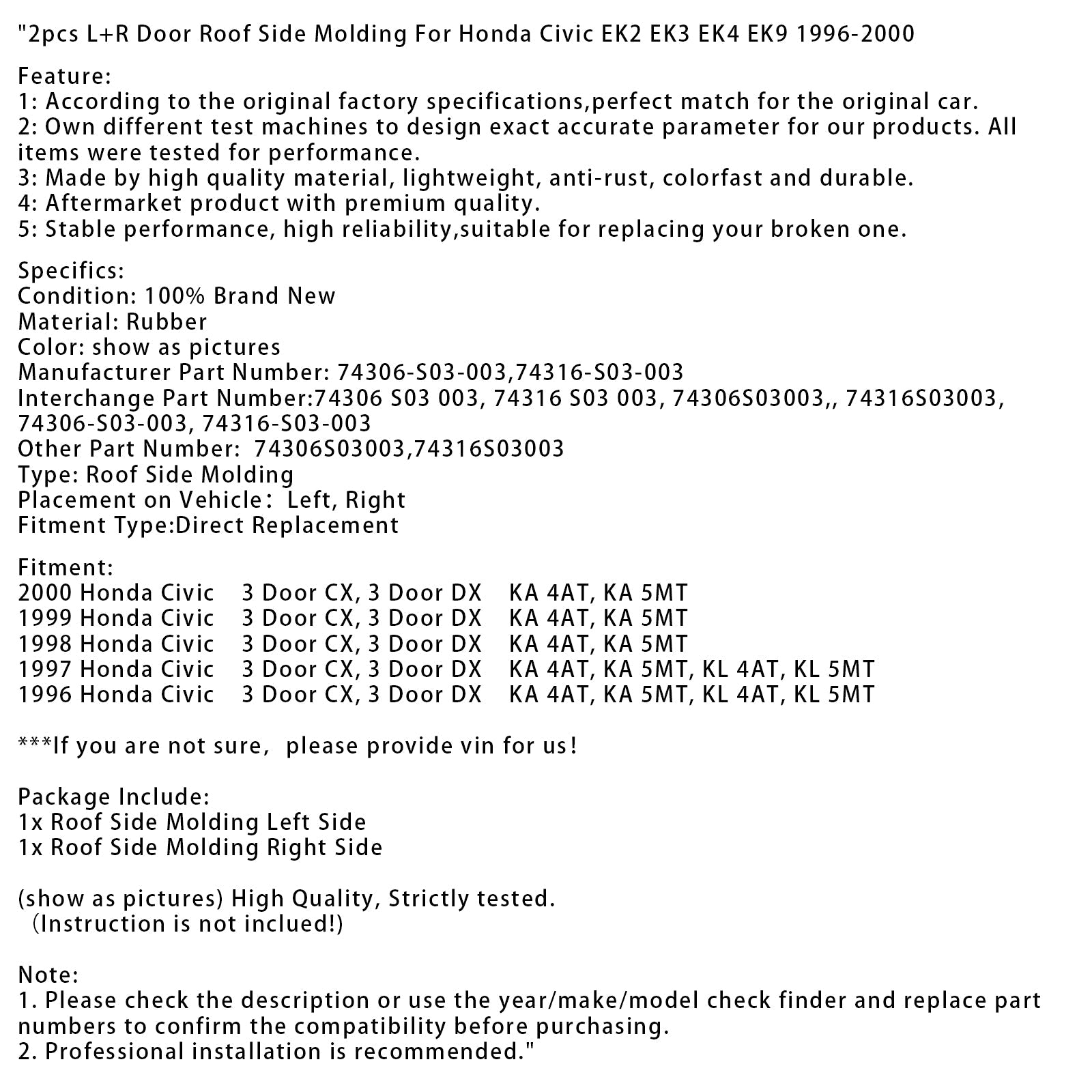 1996-2000 Honda Civic EK2 EK3 EK4 EK9 2 Stück L+R Türdach-Seitenleiste 74306-S03-003