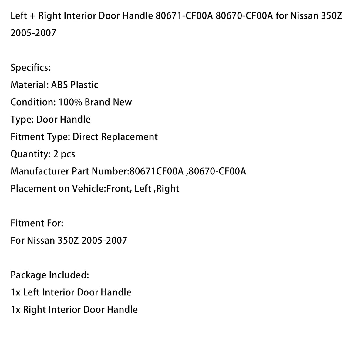 2005–2007 Nissan 350Z 2x Türgriff innen 80671-CF00A 80670-CF00A