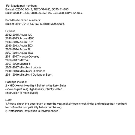 2x XENON HID Scheinwerfer Ballast & Zünder & D2 Birne Fit Für ACURA TL TSX ILX MDX RDX ZDX