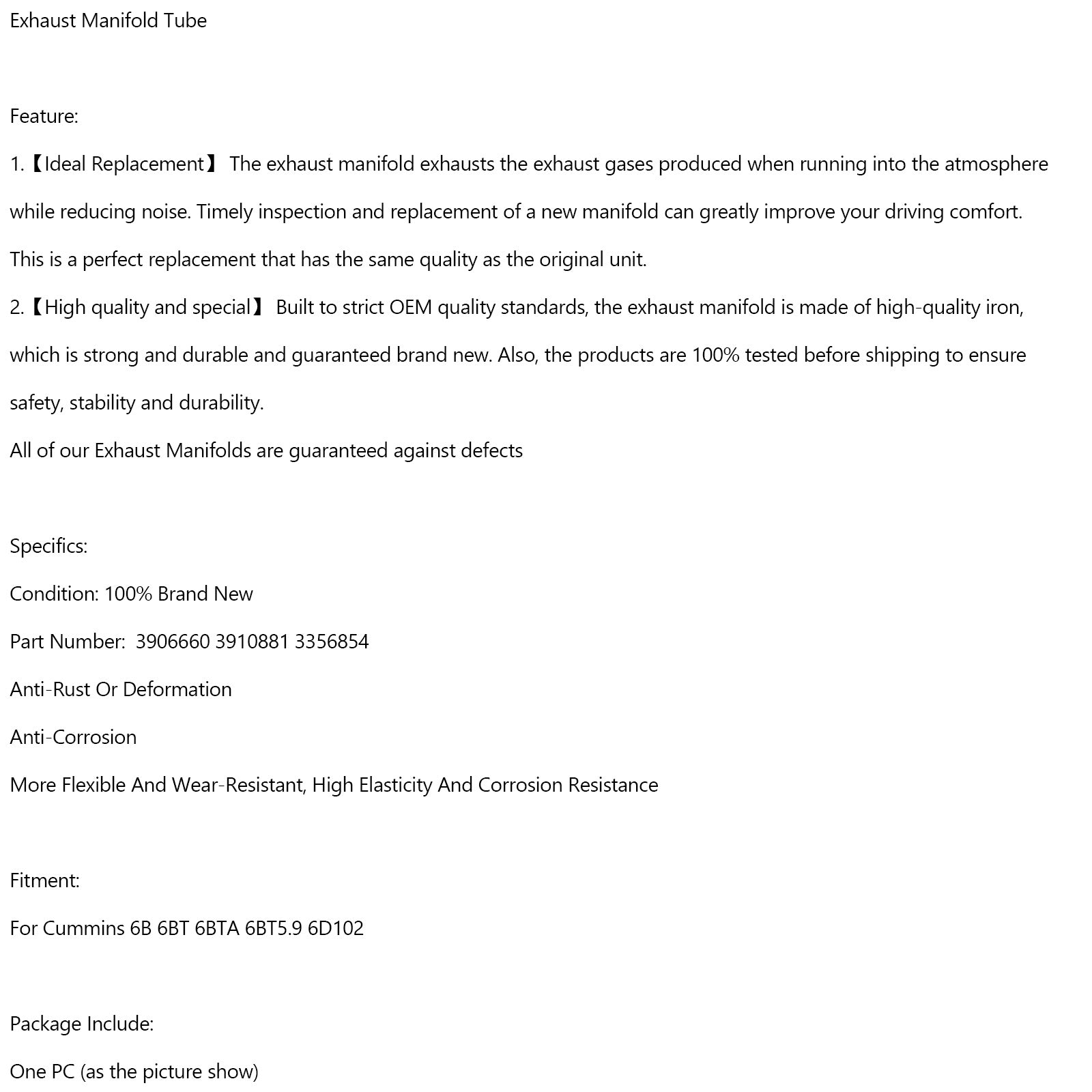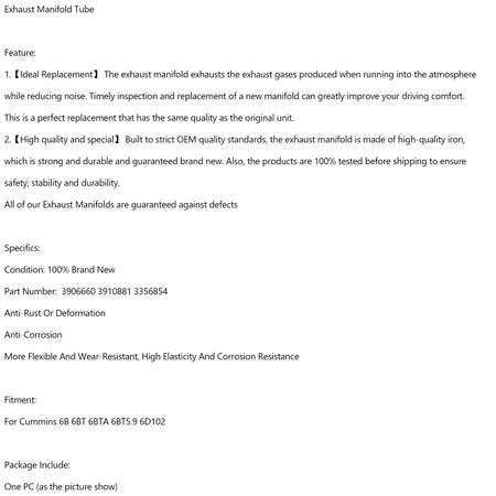 2.【High quality and special】 Built to strict OEM quality standards, the exhaust manifold is made of high-quality iron, which is strong and durable and guaranteed brand new. Also, the products are 100% tested before shipping to ensure safety, stability and durability.