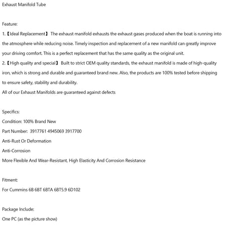 3917761 4945069 3917700 Abgaskrümmerrohr für Cummins 6B 6BT 6BTA 6BT5.9 6D102