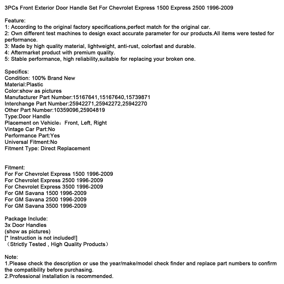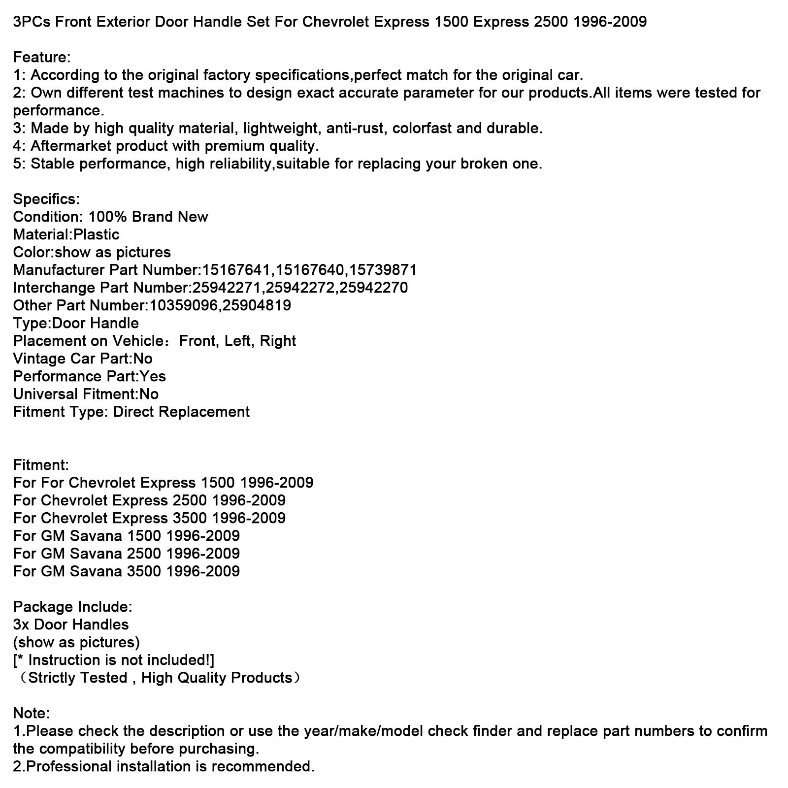 3-teiliges Set Türgriffe vorne außen für Chevrolet Express 1500 2500 1996-2009