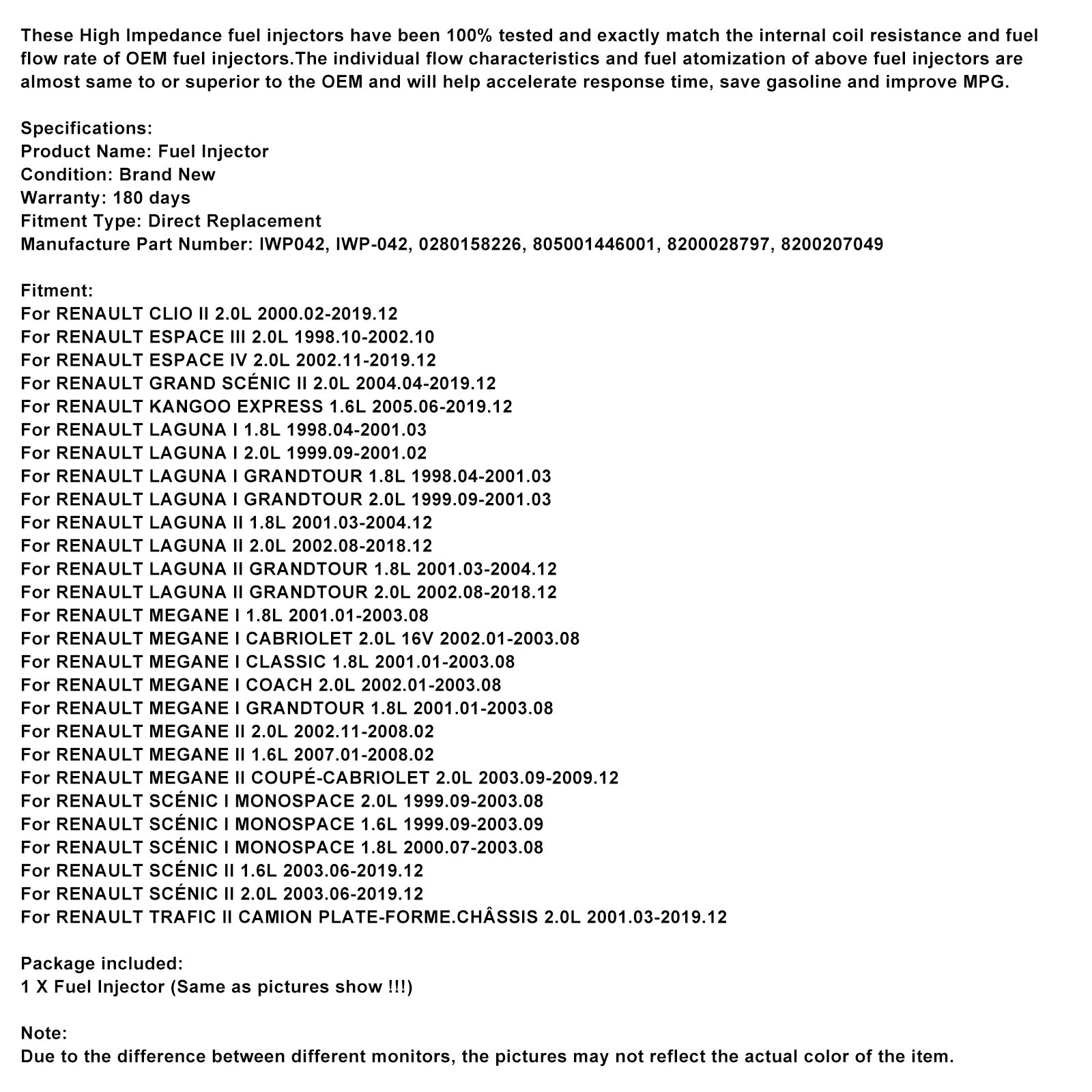 4PCS Fuel Iniector IWP042 Fit Renault Clio Espace Kangoo Laguna MeganeVehicle Parts & Accessories, Car Parts, Engines & Engine Parts!