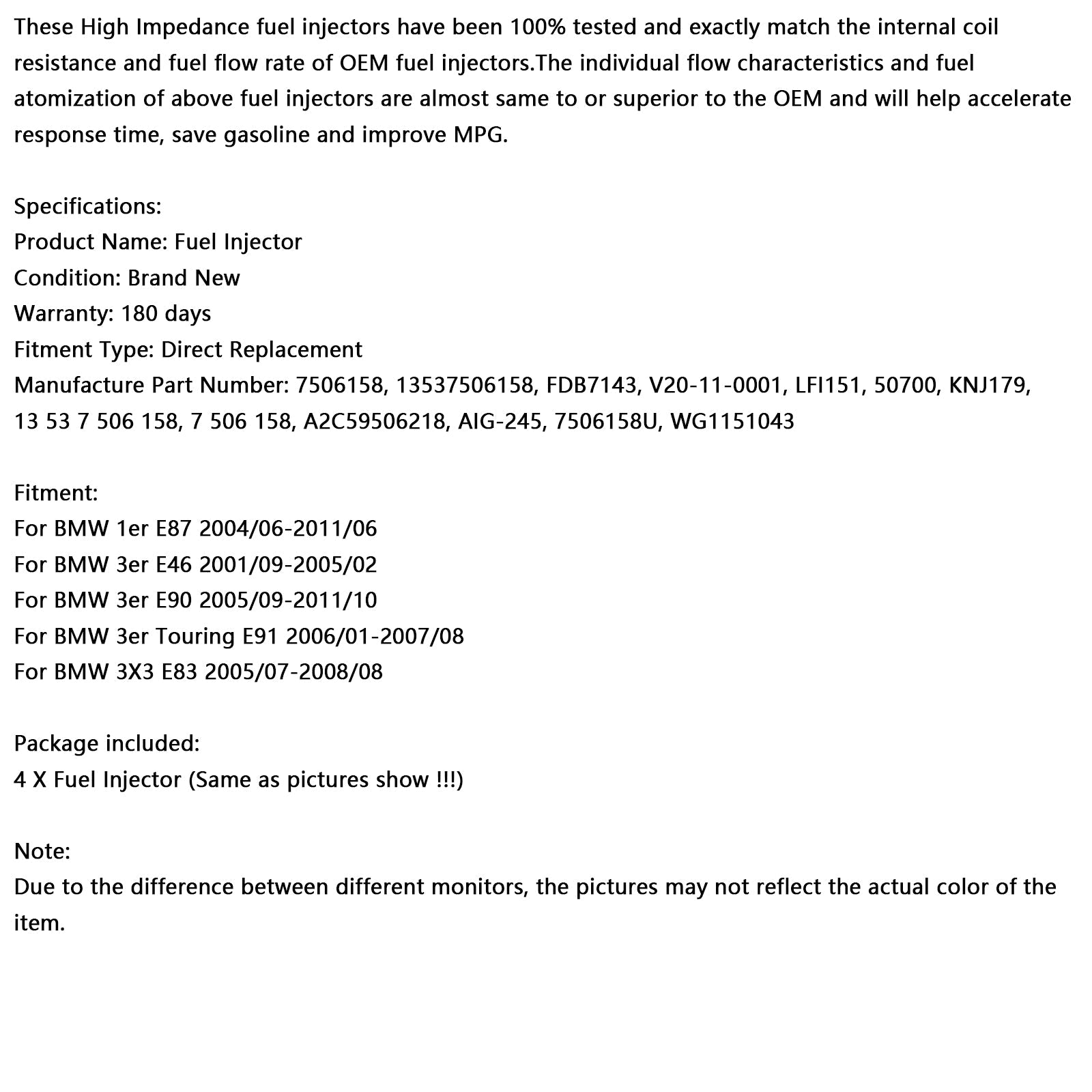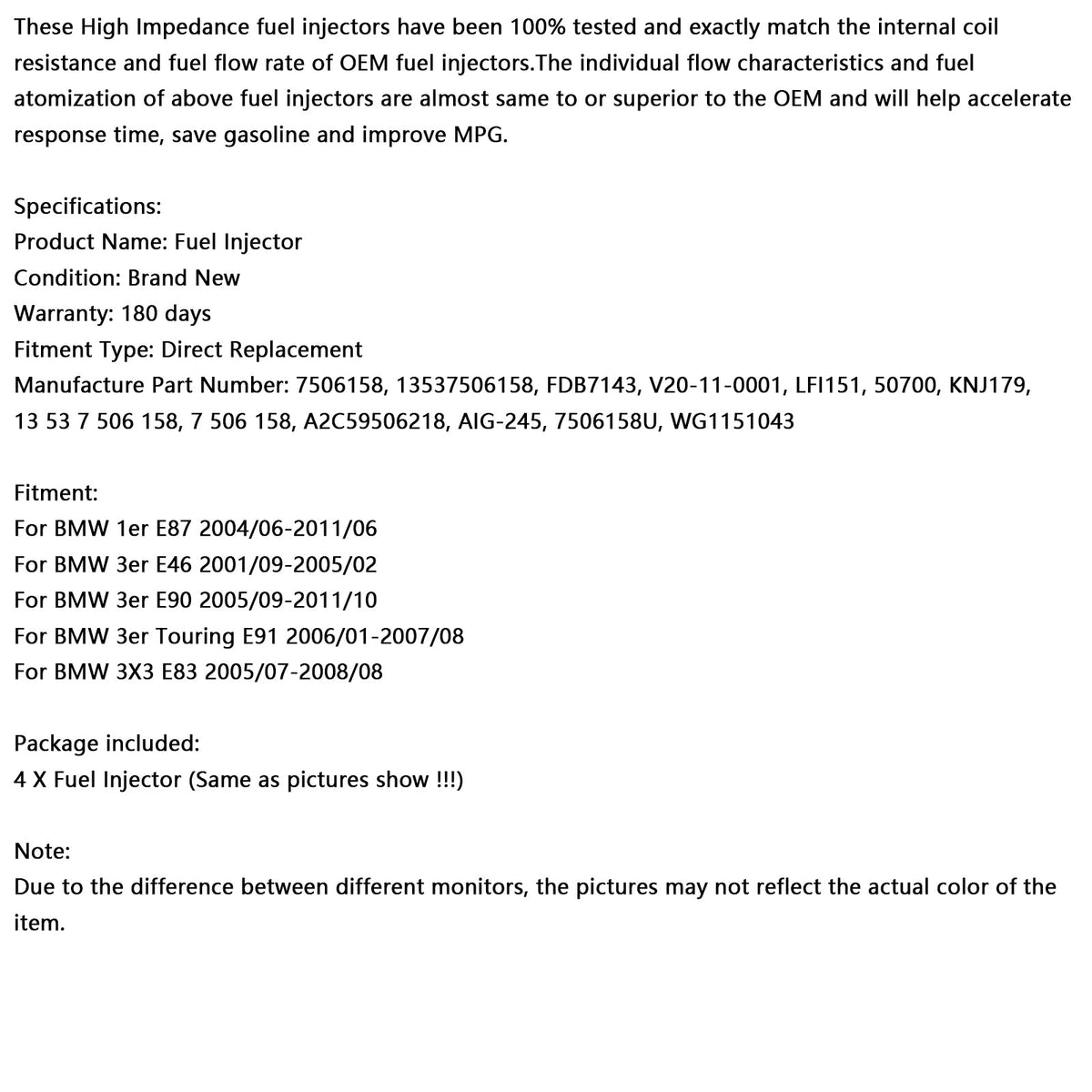 4PCS Kraftstoff Injektor 13537506158 Fit BMW 116i 120i 316i 318i 320i X3 Z4 7506158
