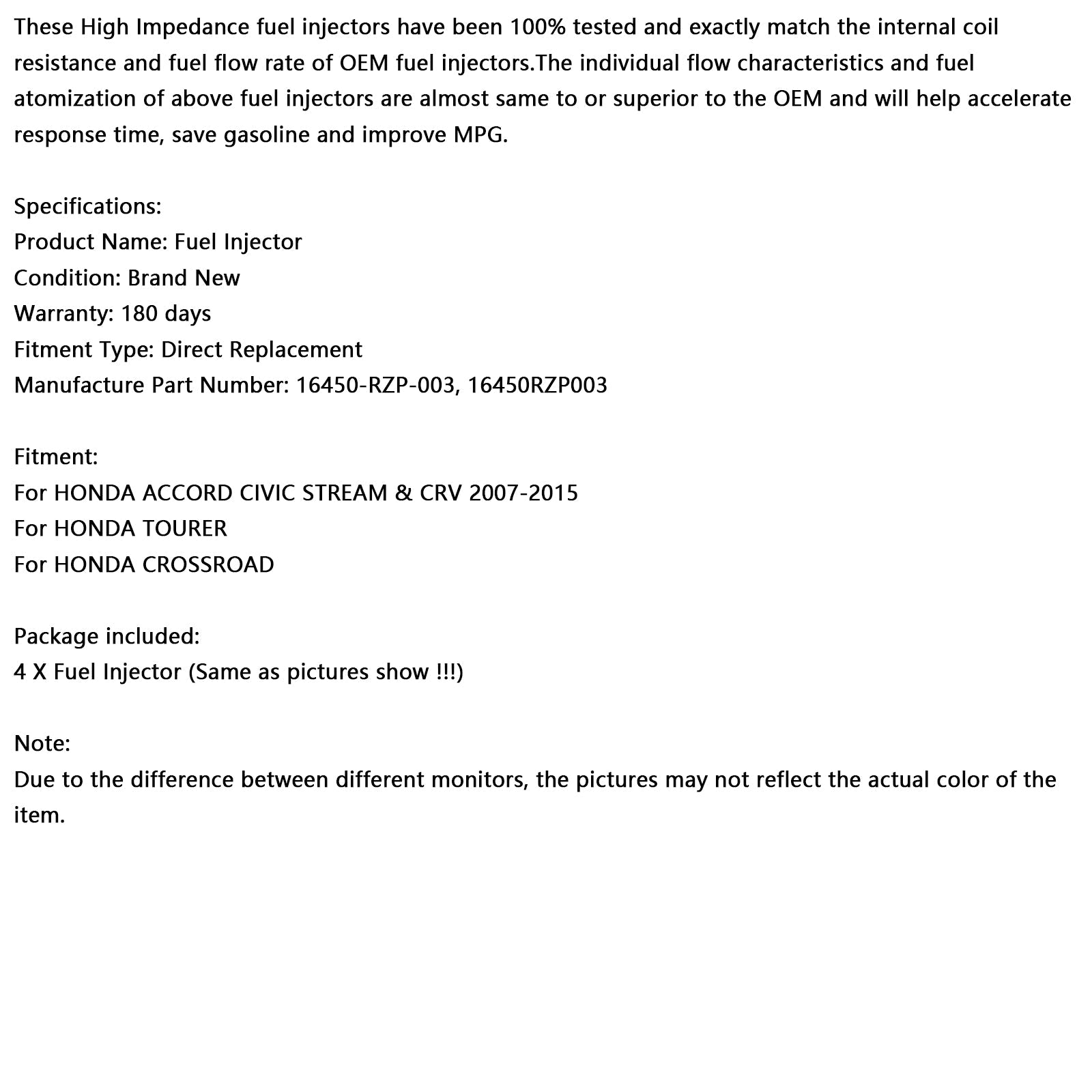 4PCS Kraftstoff Injektor 16450-RZP-003 Fit Honda Accord Civic Stream CRV Tourer 2,0 L