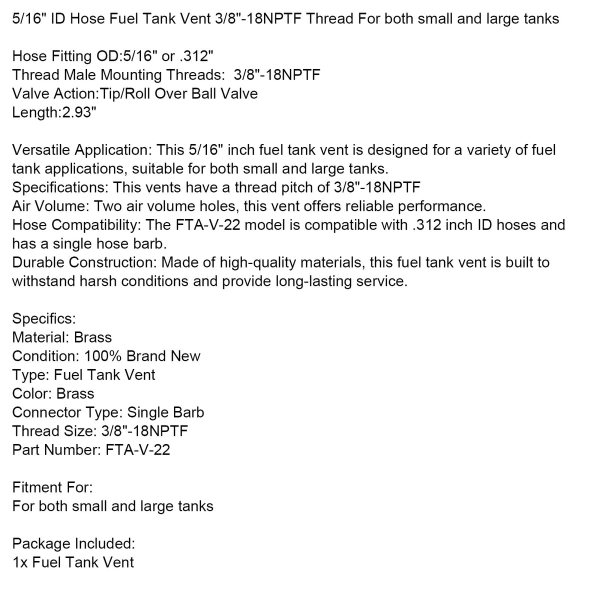 Vielseitige Anwendung: Diese 5/16-Zoll-Kraftstofftankentlüftung ist für eine Vielzahl von Kraftstofftankanwendungen konzipiert und eignet sich sowohl für kleine als auch für große Tanks.