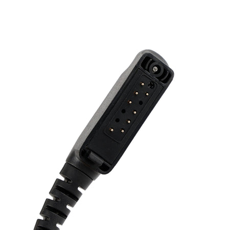 Es kann mit einem PTT-Kabel (Push-to-talk) mit 7,1-mm-Buchse verwendet werden. Ein Ende des PTT-Kabels ist ein 7,1-Buchsenstecker und das andere Ende ist ein Steckertyp, der verschiedene Intercom-Stecker haben kann.