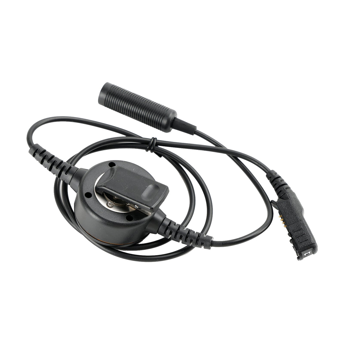 Es kann mit einem PTT-Kabel (Push-to-Talk) mit 7,1-mm-Buchse verwendet werden. Ein Ende des PTT-Kabels ist ein 7,1-Buchsenstecker und das andere Ende ist ein Steckertyp, der verschiedene Intercom-Stecker haben kann.