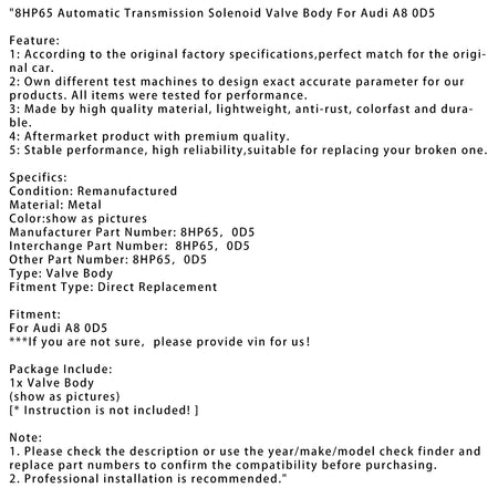 8HP65 Automatikgetriebe Magnetventilkörper für Audi A8 0D5
