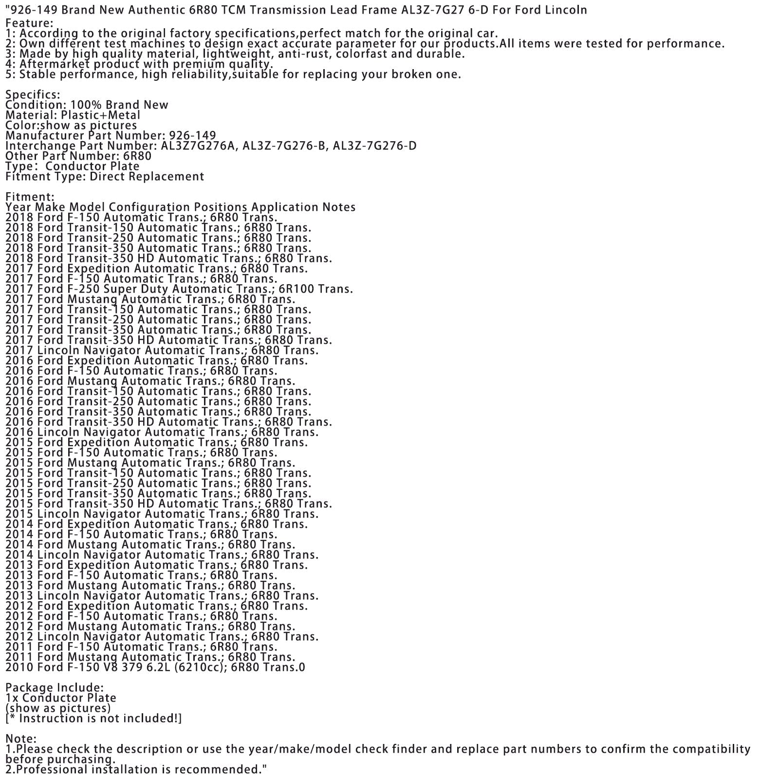 2012-2018 Ford F-150 Automatikgetriebe, brandneues, authentisches 6R80 TCM-Getriebeleitungsrahmen 926-149
