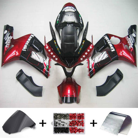 Amotopart 2003-2004 Kawasaki ZX6R 636 Gloss Black Red Fearing Kit