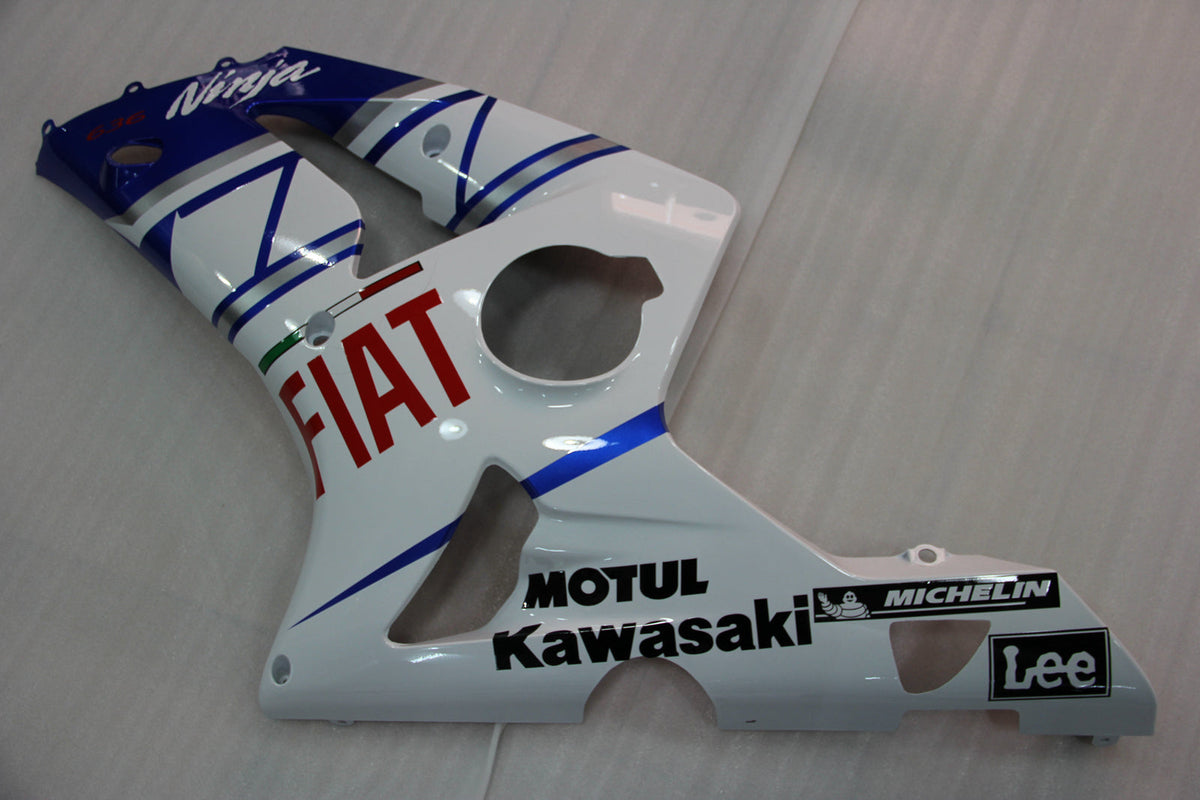 Amotopart 2003-2004 Kawasaki ZX6R Verkleidung White & Blue Kit