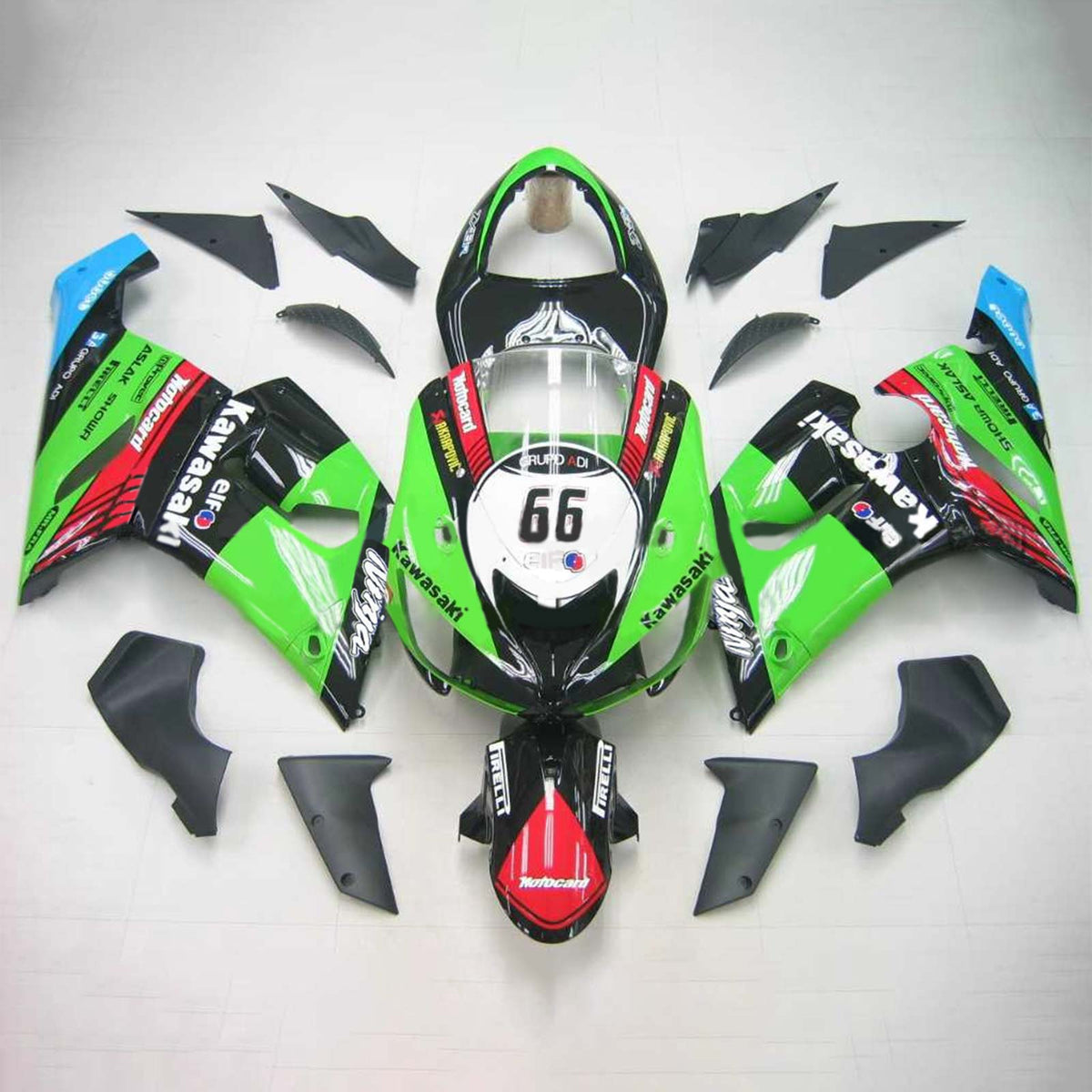 Amotopart Kawasaki 2005-2006 ZX6R 636 Schwarzes farbenfrohes Verkleidungskit