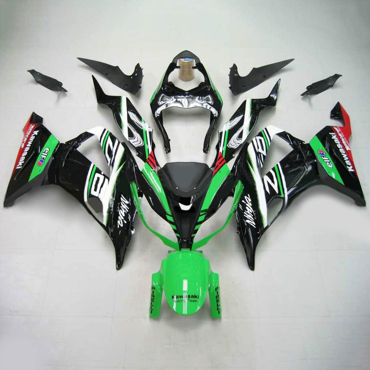 Amotopart Kawasaki 2013-2018 ZX6R 636 Green Mix Schwarzverkleidungskit