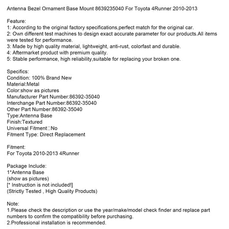 Antennenblende, Ziersockelhalterung 8639235040, passend für Toyota 4Runner 2010-2013