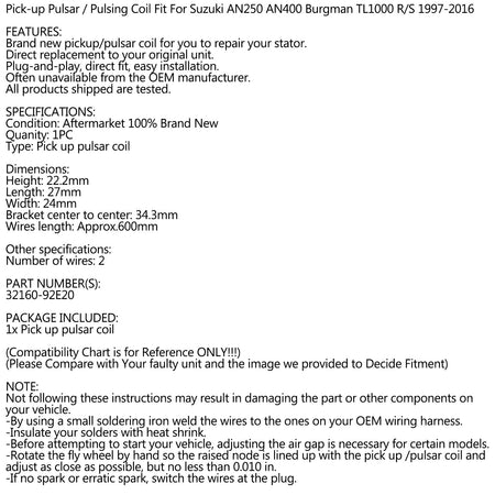 Pick-up-Pulsar / Pulsspule für Suzuki AN250 AN400 BURGMAN TL1000 R / S 1997-2016