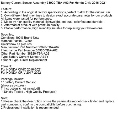 Batteriestromsensor-Baugruppe 38920-TBA-A02 für Honda Civic 2016-2021