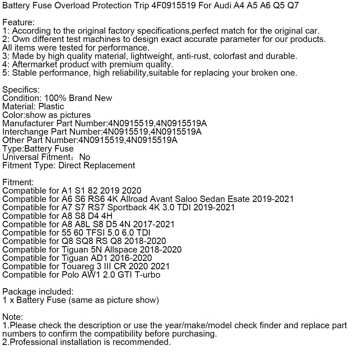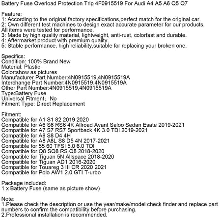 Batteriesicherung Überlastschutz Auslösung 4N0915519 für Audi A6 A7 A8 Q8 S6 S7 S8
