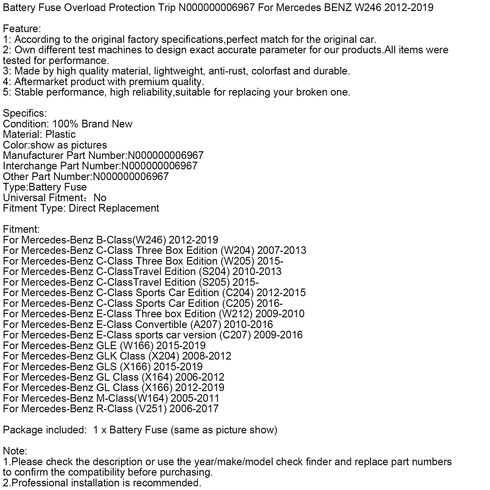 Batteriesicherung Überlastschutz Auslösung N000000006967 für Mercedes W246 12-19
