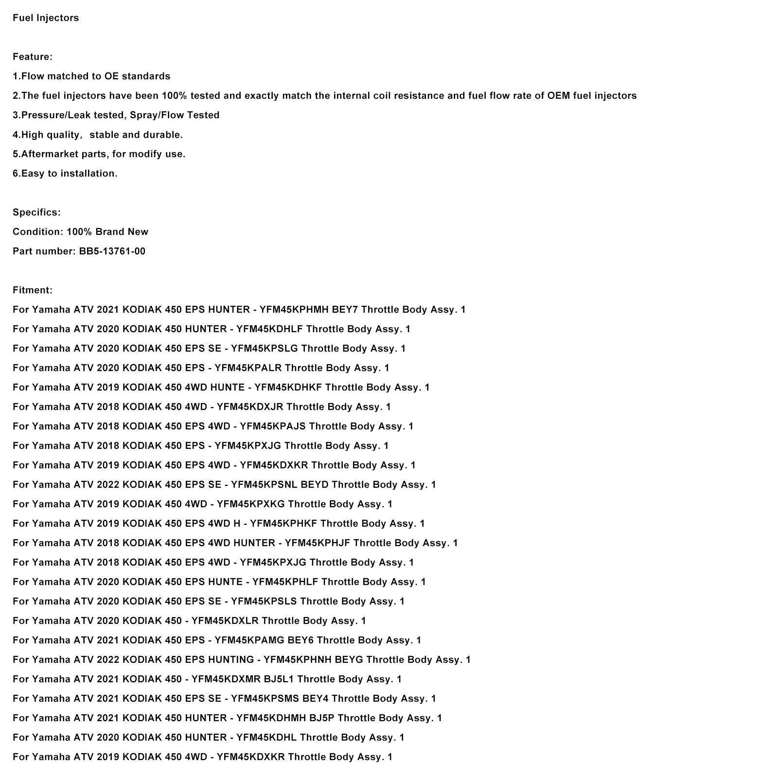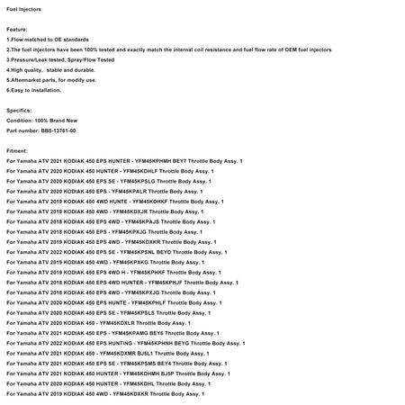 Kraftstoffeinspritzdüsen passend für Yamaha KODIAK 450 2018-2022 BB5-13761-00