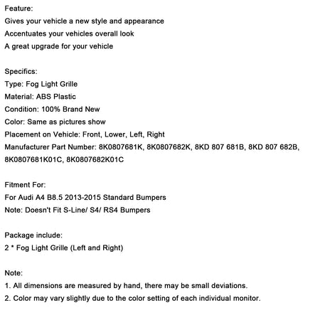 2013–2015 Audi A4 B8.5 schwarze Waben-Nebelscheinwerfer-Abdeckung Standard-Stoßstange
