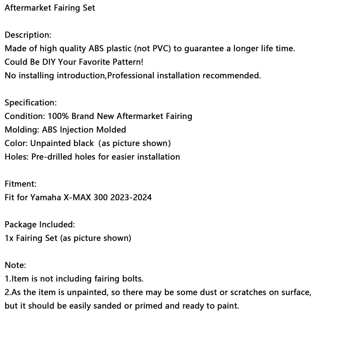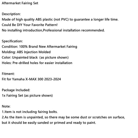 Karosserieverkleidung Injektion Unlackiert F邦r Yamaha X-MAX 300 XMAX 2023 2024