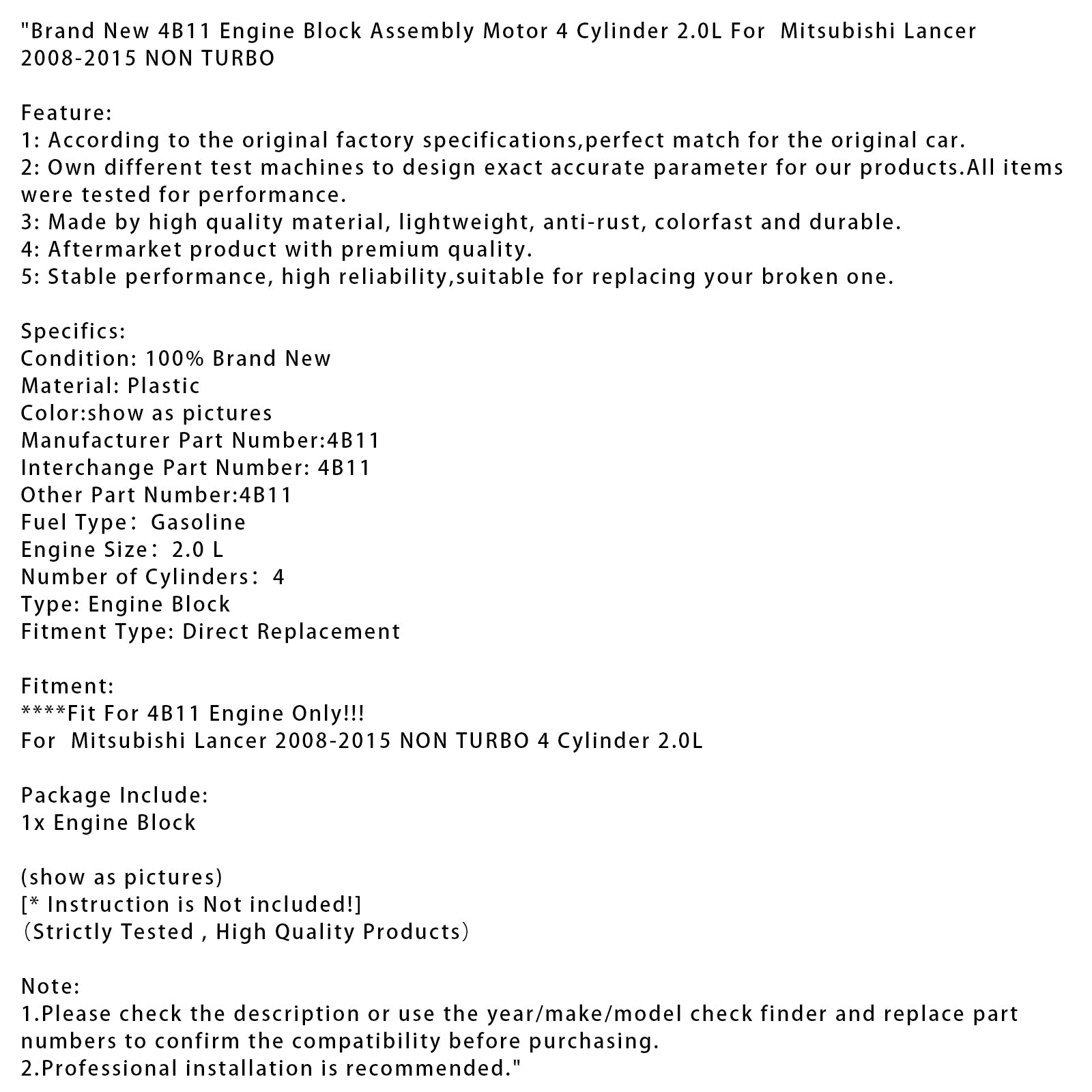 Neuer 4B11 Motorblock, 4-Zylinder, 2,0 l, passend für Mitsubishi Lancer 2008-2015, ohne Turbolader