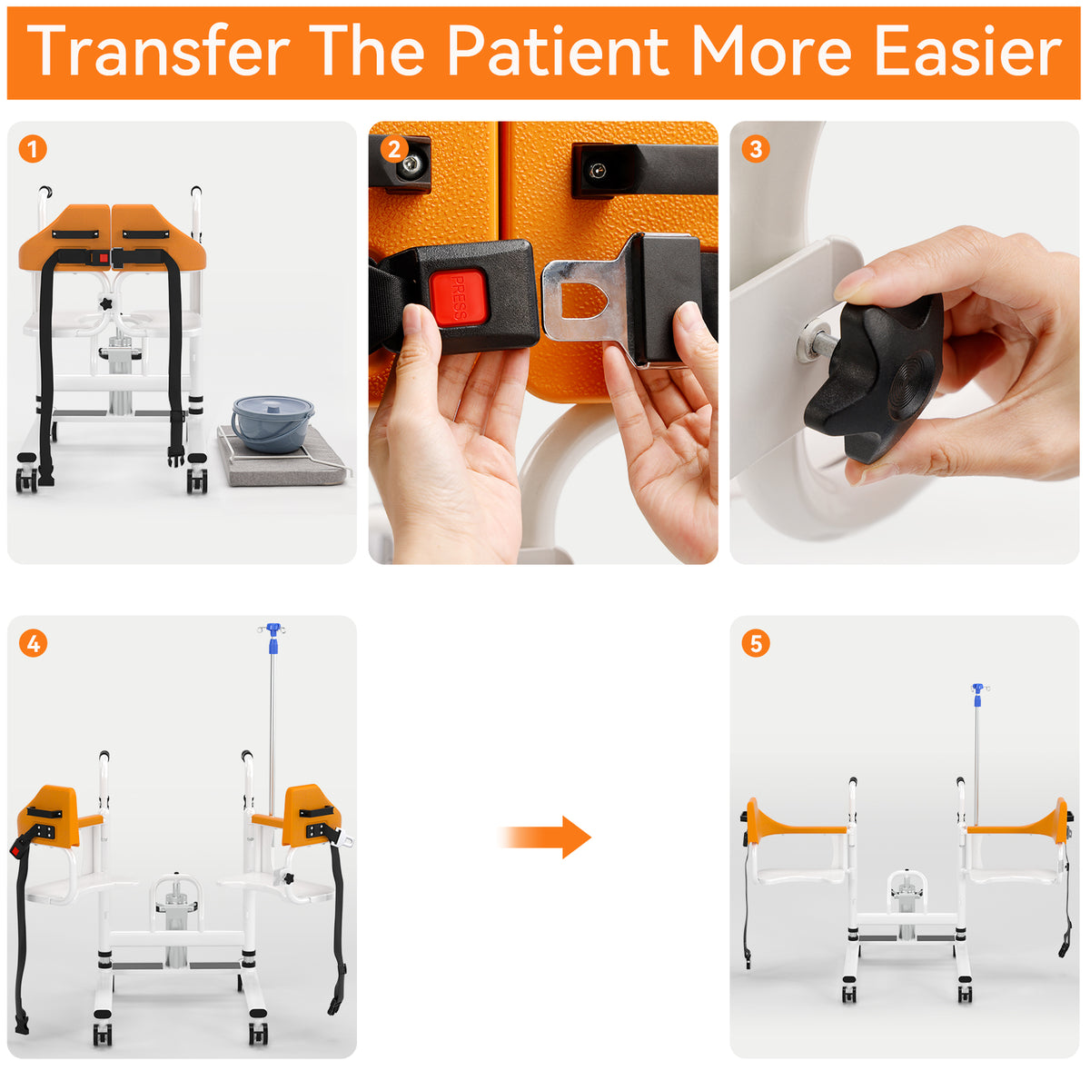 Breiter & Multifunktionaler Hydraulischer Liftrollstuhl mit 180° teilbarem Sitz