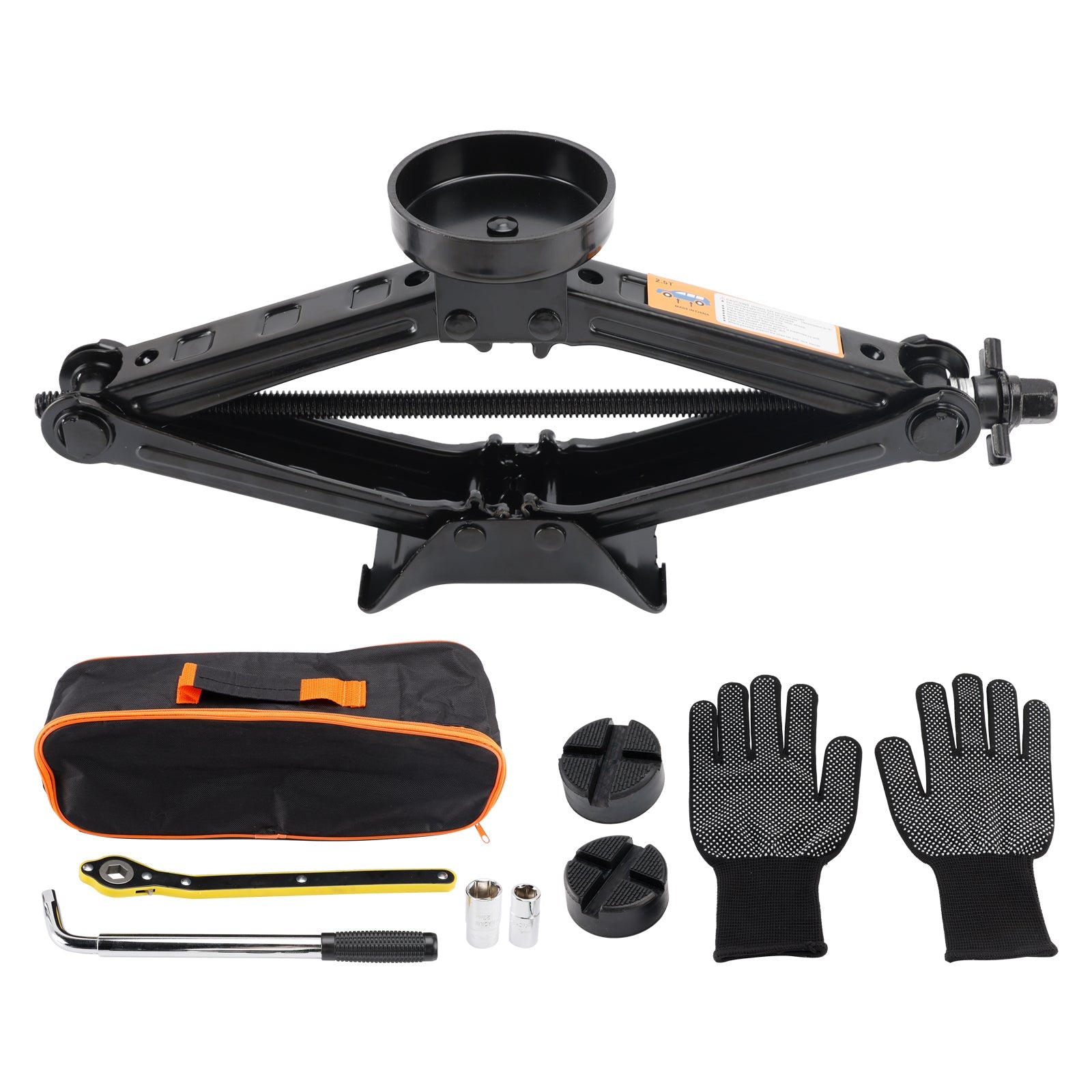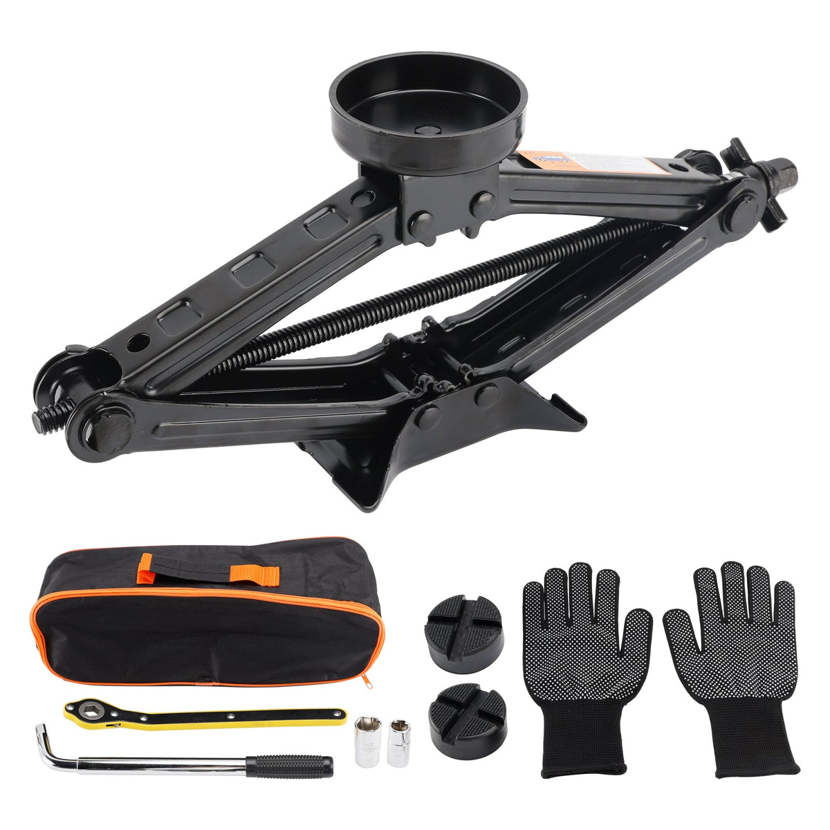 Universal-Scherenwagenheber 2,5 t/2500 kg mit Gummiauflage, tragbarer Wagenheber mit Radmutternschlüssel, Notfallset für SUV und MPV
