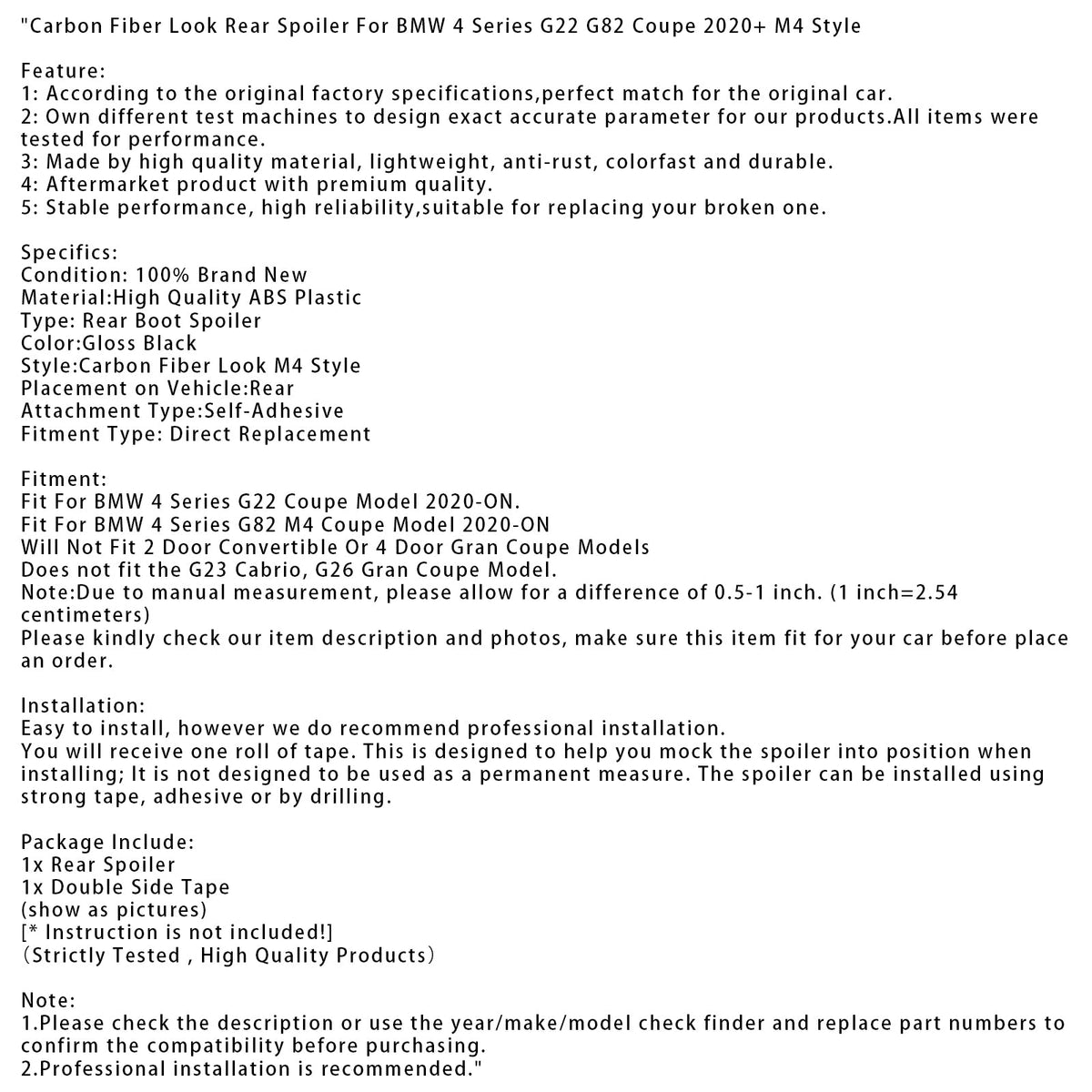 Heckspoiler in Carbonfaser-Optik für BMW 4er G22 G82 Coupé ab 2020 (M4-Stil)