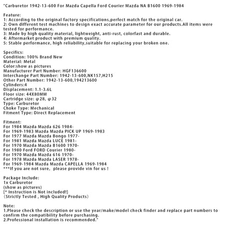 Vergaser 1942-13-600 Passend für Mazda Capella, Ford Courier, Mazda NA B1600 1969-1984