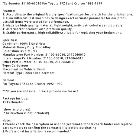 Vergaser 21100-66010 passend für Toyota 1FZ Land Cruiser 1992-1999