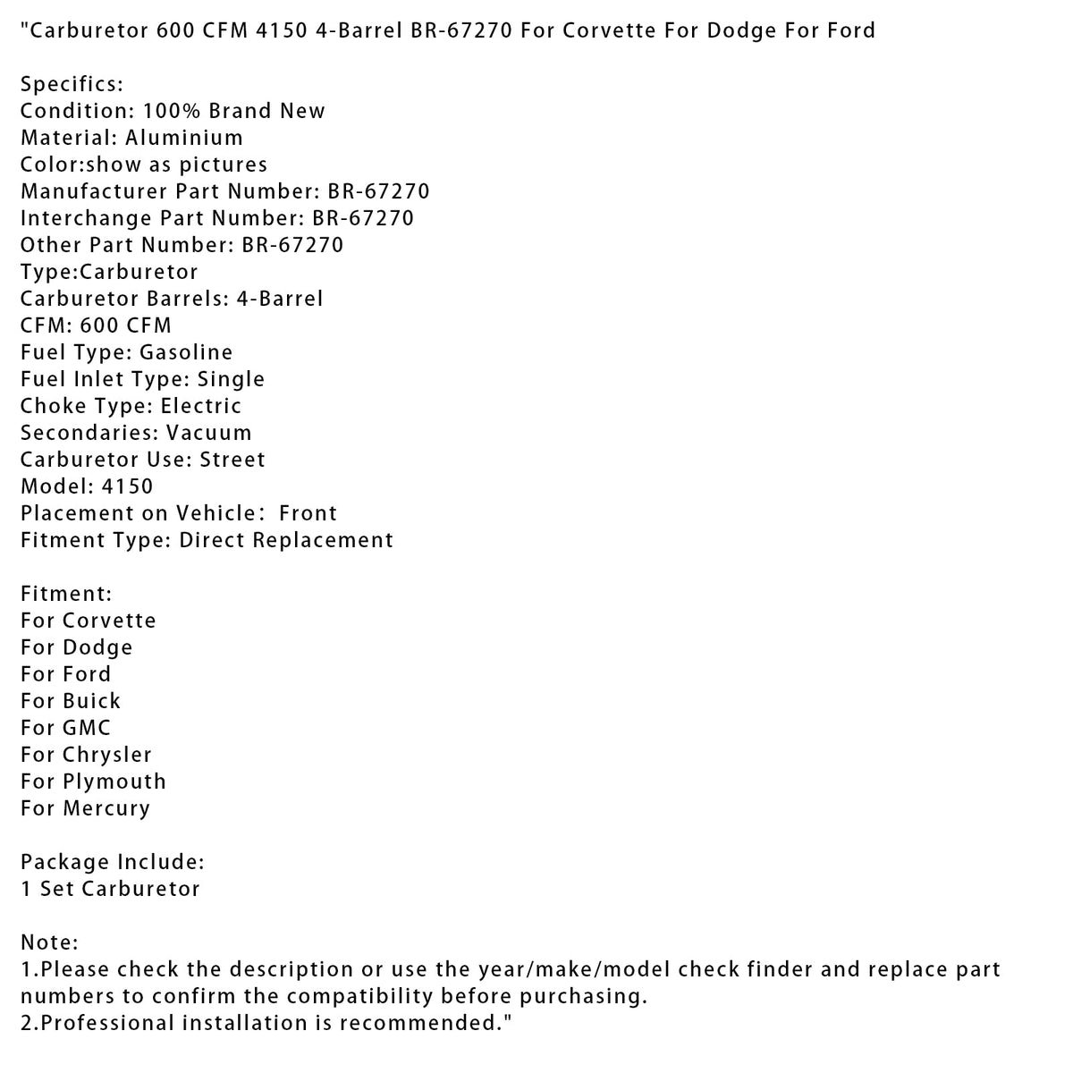 Vergaser 600 CFM 4150 4-Barrel BR-67270 Für Corvette Für Dodge Für Ford