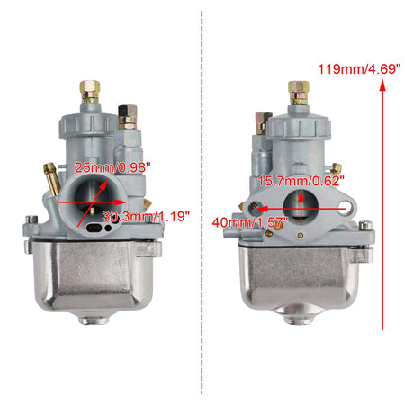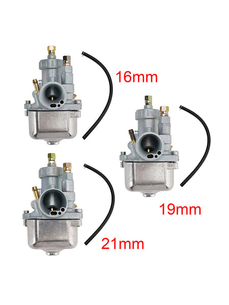 Erhältlich mit 16 mm, 19 mm und 21 mm Vergasern für Motorräder mit unterschiedlichen Hubräumen. Bitte prüfen Sie vor dem Kauf, ob die Kalibergröße geeignet ist.