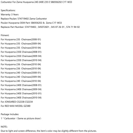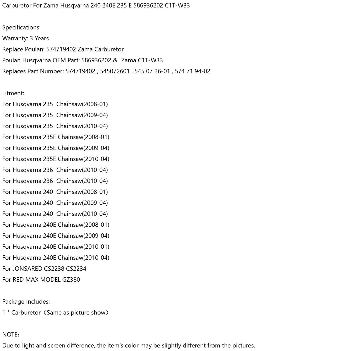 Vergaser Fit Zama Husqvarna 240 240E 235 E 586936202 C1T-W33