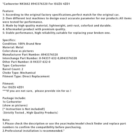 ISUZU 4ZD1 Vergaser NK5662 8943376320 8-94337-632-0