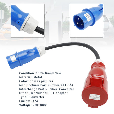 CEE Steckdose Kupplungsstecker Einbausteckdose Phasenwender 32A 3 Phasen auf 1 Phasen